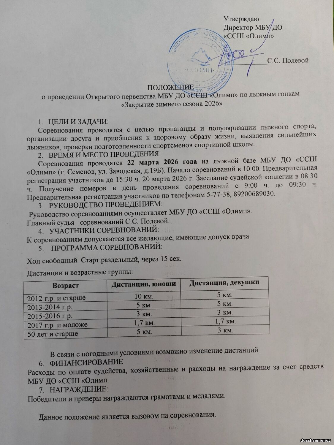 Адрес электронной почты: olymp-semenov@mail.ru